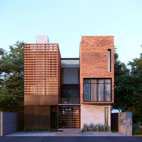 We were honored to shape this story into a space where raw material meets raw emotion. Rustic concrete and exposed brick set the tone, while a delicate jaali wraps around the home like a graceful, timeless saree.